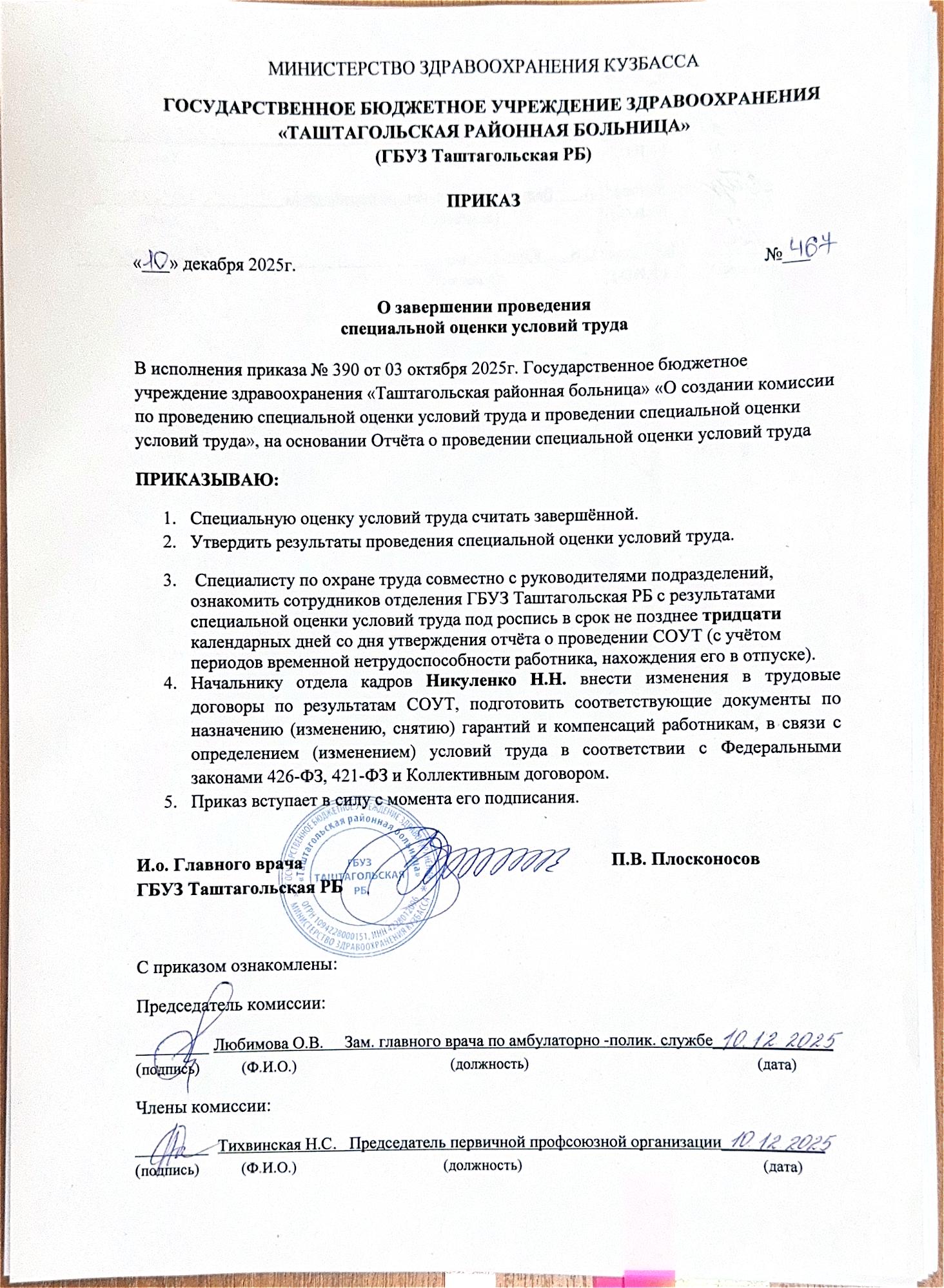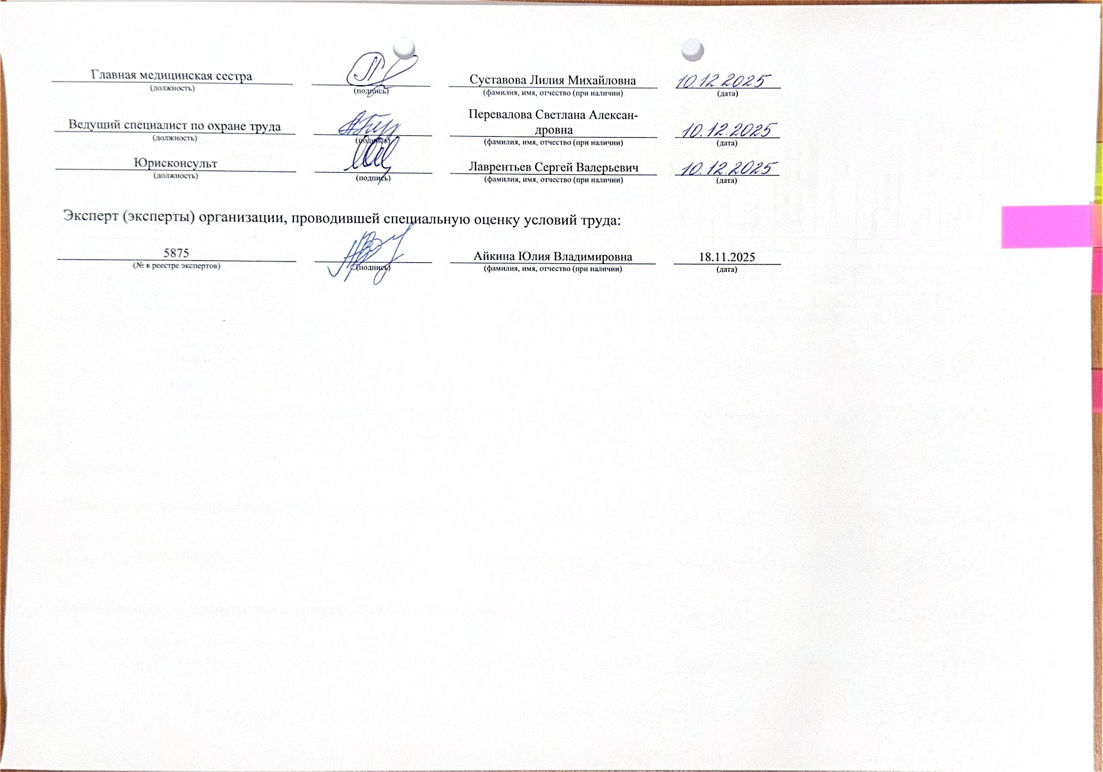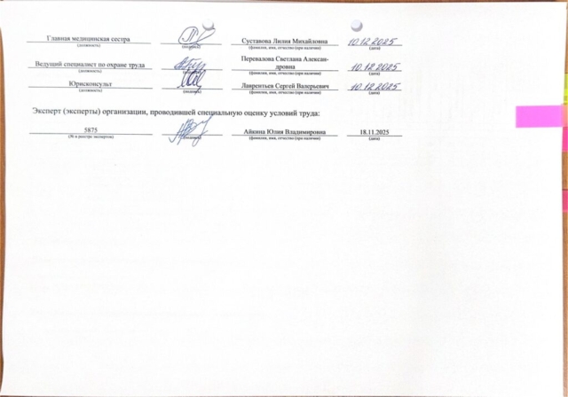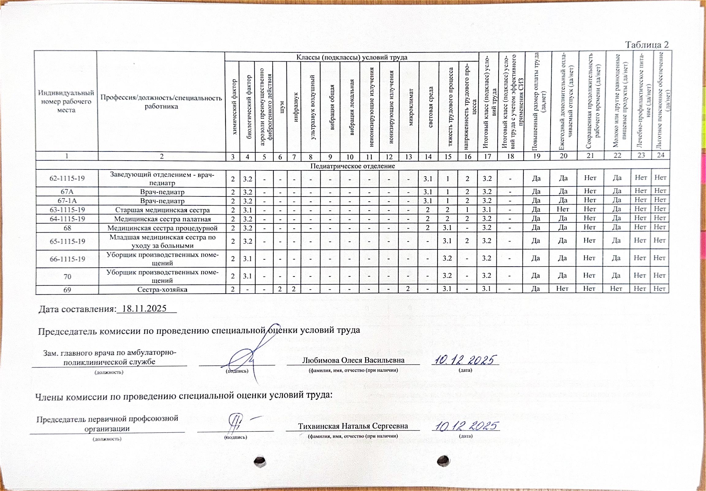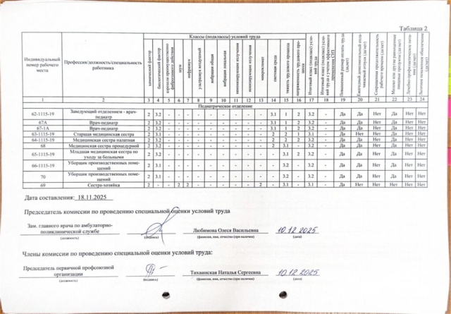 Сводная ведомость результатов проведения специальной оценки условий труда
